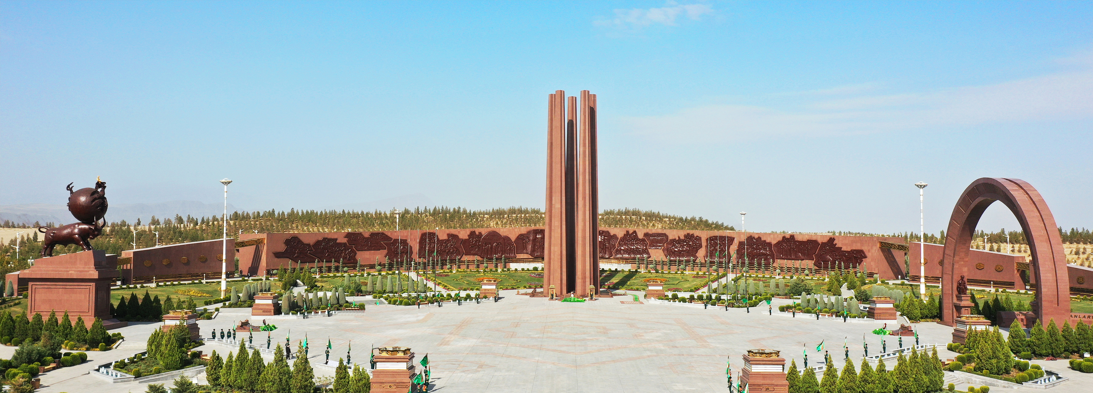 Toplumdaky 1948-nji ýylyň ýertitremesinde gurban bolanlaryň ýagty ýadygärligini hatyralamak üçin «Ruhy tagzym» ýadygärligi, Beýik Watançylyk urşundaky söweşlerde wepat bolan türkmenistanly esgerleriň hem-de mähriban Watanymyzyň erkinligi, onuň bagtyýar geljegi ugrundaky söweşlerde baş goýan gahrymanlaryň hatyrasyna bina edilen «Milletiň ogullary» we «Baky şöhrat» ýadygärlikleri halkymyzyň gahrymançylykly taryhyny şöhlelendirýär.